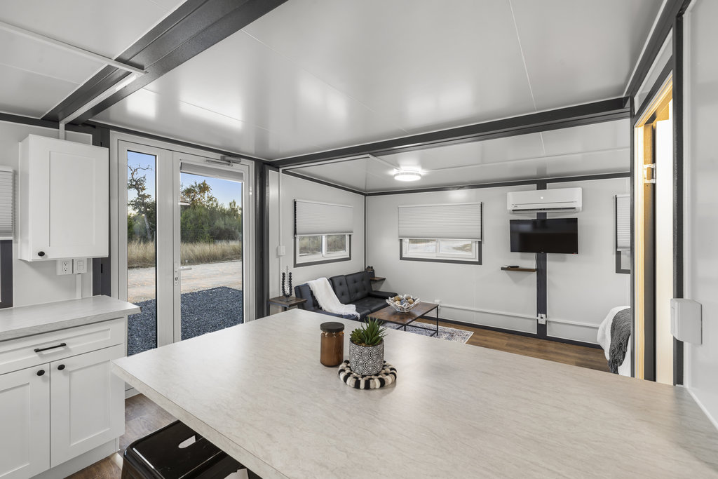 The Bungalow is a versatile 380 sq ft unit available in either a studio or two-bedroom layout, offering flexibility to suit a range of living needs. Compact yet complete, it includes a full kitchen, bathroom, and in-unit washer and dryer. Whether used as a backyard ADU, a rental unit, the Bungalow delivers efficient design and livable comfort in a minimal footprint.